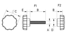 105062069901 Grip screw [105] (105062069901) M6 20 30 16 4 F1 Nylon-6 (PA-6)